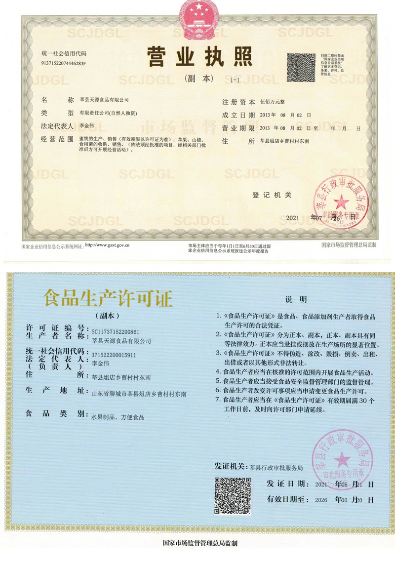 莘縣天源食品有限公司坐落于廣袤肥沃的魯西大平原—山東聊城莘縣,公司實力雄厚,產品品種豐富,占地面積8000平方米,在職員工150多人,固定資產800多萬元,年產2000多噸,是一家集山楂收購、加工、生產、銷售于一體的現代化食品企業。本公司主要生產經營山楂系列食品,如山楂片、山楂飴、野山楂果丹皮、雪山楂、山楂酪、鐵山楂...